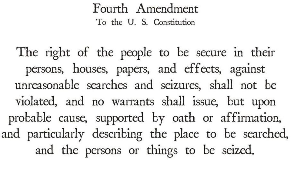The right of the people to be secure in their persons, houses, papers, and effects, against unreasonable searches and seizures, shall not be violated, and no Warrants shall issue, but upon probable cause, supported by Oath or affirmation, and particularly describing the place to be searched, and the persons or things to be seized.