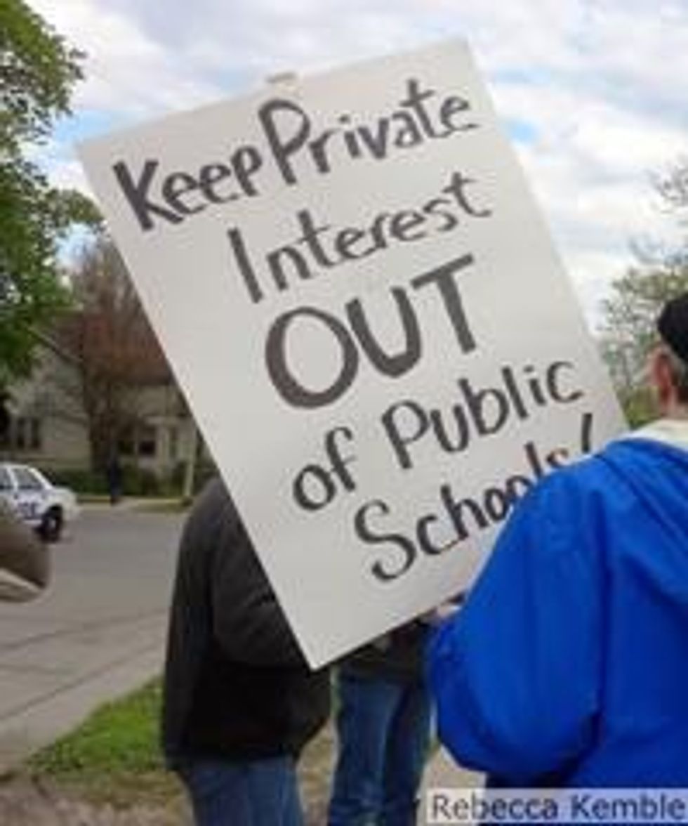 A statement from the group For All Madison Students reads, "Public schools, locally controlled, are a cornerstone of our democracy. Private interests, aided by the Federal Government, are attempting to supplant local control and to transfer public funding to privately run schools, transforming them into corporate-owned test prep factories."
