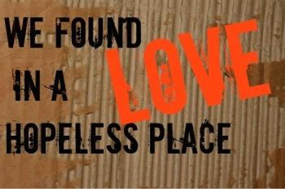 The diverse May Day organizers had agreed on an "official" platform: "Legalize, Unionize, Organize." In twelve hours of talking to revelers I heard not one person refer to it. I did hear, repeated in myriad ways, a clear, but different, message. A banner that caught my eye just before I called it a day summed up that sentiment well: "We found Love In A Hopeless Place."