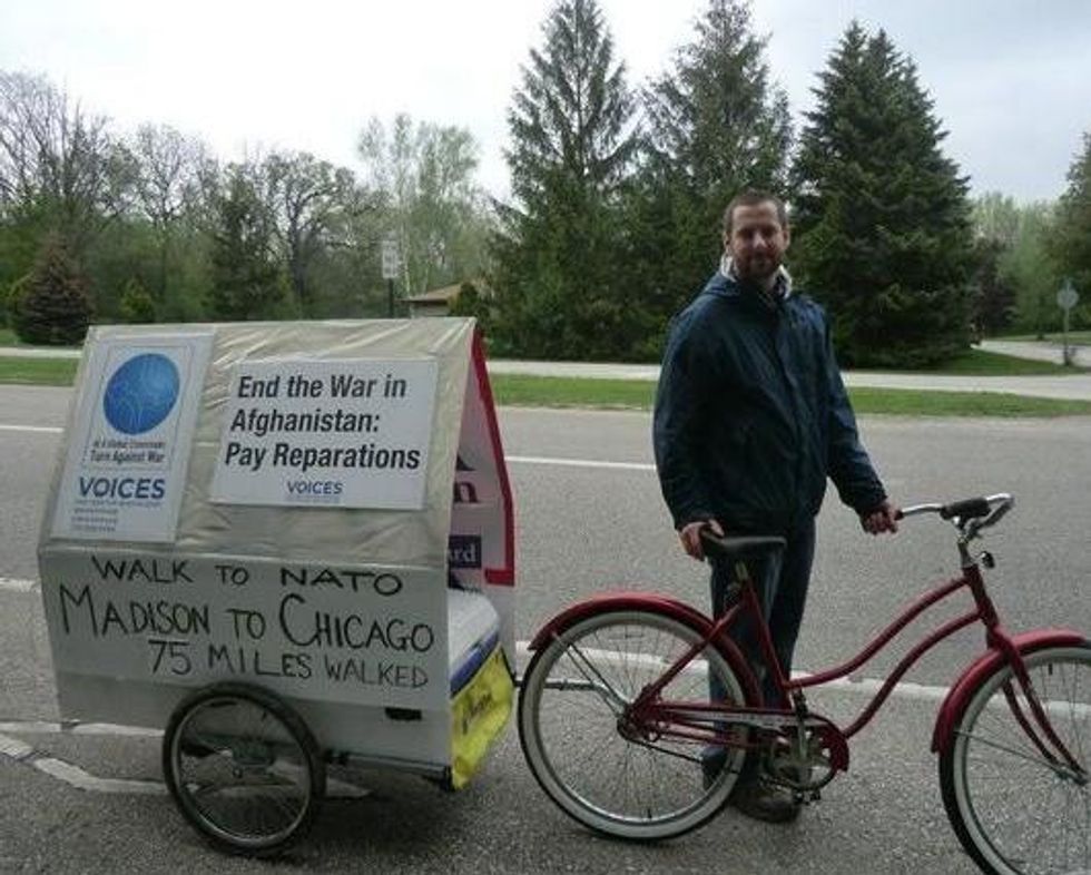 The miles go by, and we've now passed through more than 20 cities and had 5 formal speaking stops. Since this campaign started I've heard from people who didn't even know NATO was in Afghanistan -- they now know how the two are linked. Many others have come away with useful new information about NATO and about people in Afghanistan, Iraq, Pakistan, and Bahrain. All people not fundamentally different from ourselves, who wish and hunger for peace and friendship.