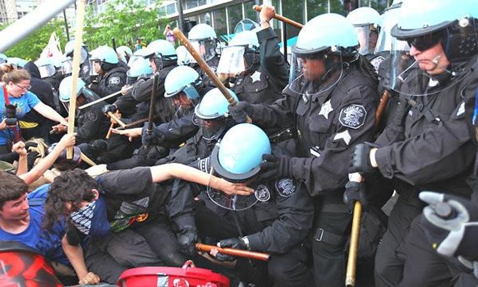 fascist police state that has reared its ugly head in the past year. If you want to see what tyranny looks like, consider what happened to the estimated 75,000 protesters who took on the military-industrial complex at last weekend's NATO summit in Chicago, after the mayor revoked protesters' attempts to lawfully assemble.