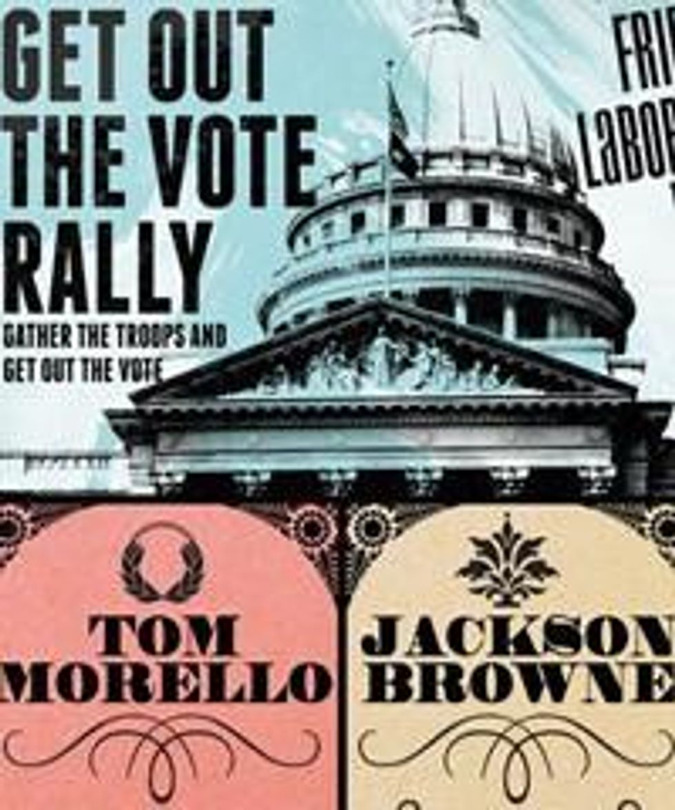 Other rock stars coming to Madison this week to help get out the vote for the recall include Tom Morello, Jackson Browne, Brother Ali and Mike McColgan at a We Are Wisconsin Get Out the Vote rally at the Labor Temple on Friday, June 1.