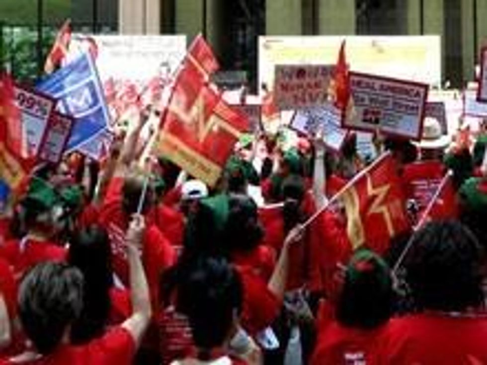 In mid-May, thousands of nurses from National Nurses United and their allies donned Robin Hood hats and marched in Chicago to escalate their call for a financial speculation tax that would tax speculative stock and derivatives trades and raise billions of dollars to, in the words of the nurses, "heal America." Days later in Chicago, dozens of U.S. veterans lay down their medals to protest the continuing war in Afghanistan and to call for a shift from a war economy to a green and fair one. That same day, hundreds of members of the National Domestic Workers Alliance and National People's Action marched on Treasury Secretary Tim Geithner's home in suburban Washington D.C. demanding decent jobs and a fair economy.