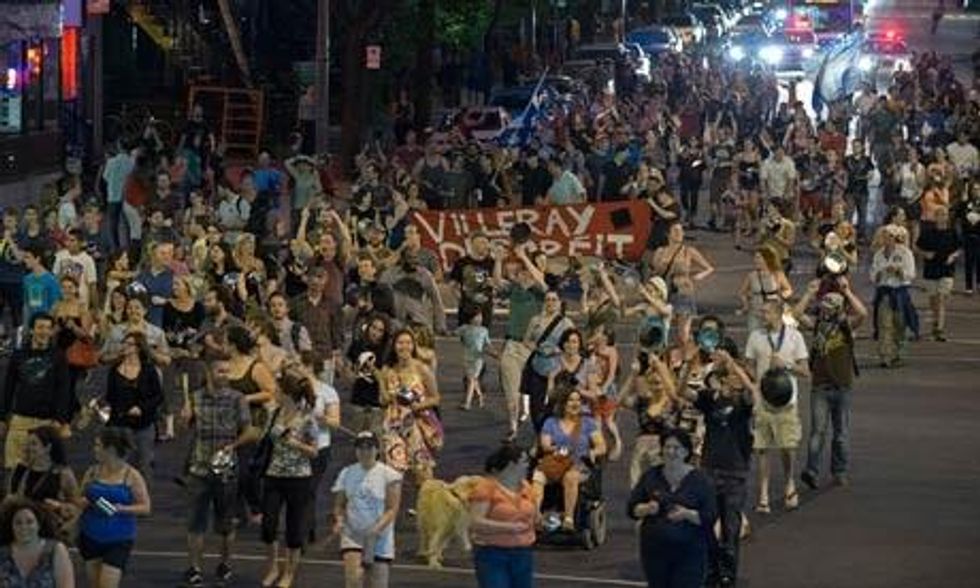 The streets of Montreal are clogged nightly with as many as 100,000 protesters banging pots and pans and demanding that the old systems of power be replaced. The mass student strike in Quebec, the longest and largest student protest in Canadian history, began over the announcement of tuition hikes and has metamorphosed into what must swiftly build in the United States--a broad popular uprising. The debt obligation of Canadian university students, even with Quebec's proposed 82 percent tuition hike over several years, is dwarfed by the huge university fees and the $1 trillion of debt faced by U.S. college students. The Canadian students have gathered widespread support because they linked their tuition protests to Quebec's call for higher fees for health care, the firing of public sector employees, the closure of factories, the corporate exploitation of natural resources, new restrictions on union organizing, and an announced increase in the retirement age. Crowds in Montreal, now counting 110 days of protests, chant "On ne lache pas"--"We're not backing down."