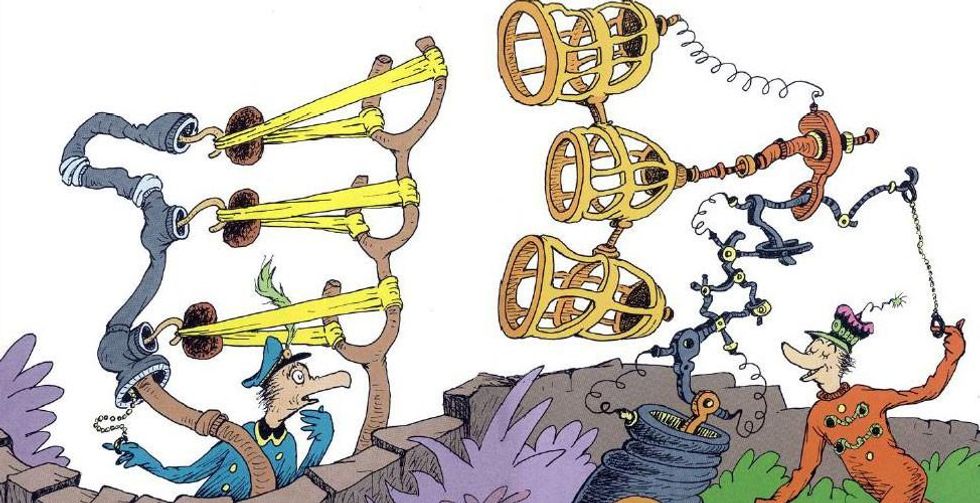 Generations who were raised (or are raising others) on the children's books of Theodore Giesel aka "Dr. Seuss" may have recognized, above, the opening lines of "The Butter Battle Book," Dr. Seuss's delightful yet alarming parable of the cold war and its fragile nuclear stalemate, with only the threat of MAD (Mutually Assured Destruction) holding off attempts by either side to exterminate the other, as an arms race spiraled towards a potential World War III.