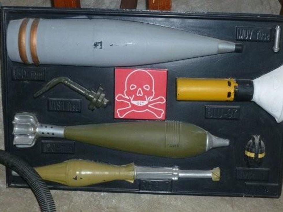 We learned that Afghanistan's countryside is still littered with remnants of HEAT (High Explosive Anti-Tank) tracer missiles and rockets made by the Chinese and the Soviets, High Explosive Anti-Personnel projectiles from China, cluster munitions made by the Italians, Czechs, Chinese and Russians, Soviet fragmentation bombs, Soviet plastic explosive fragmentation bombs, US Claymore fragmentation bombs, plastic land mines from Iran and Pakistan, British and Egyptian anti-tank mines, plastic explosives from Italy, Belgium and Pakistan, plus mortar bombs, rocket propelled grenade launchers and, displayed on shelves but a few inches above the floor, the disused rifles, bullets and swords from back at the start of this escalation, in the simpler, "snick-berry switch" days of one-on-one small-scale violence.