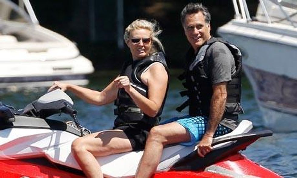 Last weekend's photos of the Romney clan on a luxury speedboat cruising around a lake in New Hampshire, where their multimillion-dollar compound sits, were startling in their tone-deafness. And just to make sure the sentiment wasn't lost on anyone, at a campaign event the same week, Obama recounted childhood memories of touring the US with his grandmother by Greyhound bus, even the thrill of staying at a Howard Johnson motel. In a smart political calculation, the Obamas chose to forgo their annual summer vacation in Cape Cod (a nice upper-middle class vacation spot, mind you, but nowhere near the same league as the Romney estate). Instead, Obama was photographed visiting a senior citizens' home in the battleground state of Ohio.