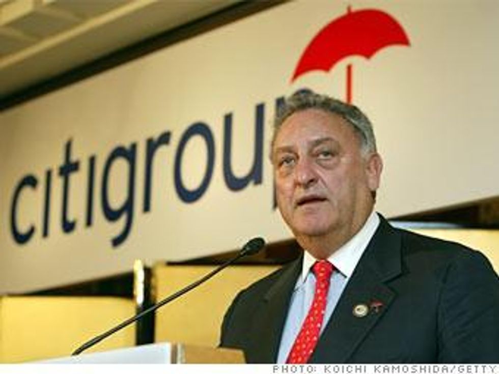 Who does he think he is fooling? You might remember that just weeks after American taxpayers ponied up the $45 billion bailout of his once-haughty bank, Weill commandeered a Citigroup jet -- fueled with our dollars -- to give him a free ride to a Mexican resort for a vacation! Reporting on this act of narcissistic avarice, The New York Post wrote Weill's eternal epitaph in a two-word headline: "Pigs Fly.?