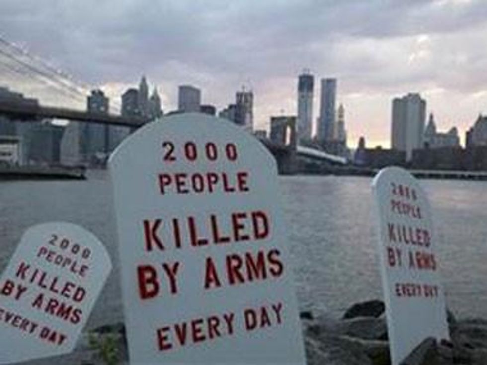 Quick: What is more heavily regulated, global trade of bananas or battleships? In late June, activists gathered in New York's Times Square to make the absurd point, that, unbelievably, "there are more rules governing your ability to trade a banana from one country to the next than governing your ability to trade an AK-47 or a military helicopter." So said Amnesty International USA's Suzanne Nossel at the protest, just before the start of the United Nations Conference on the Arms Trade Treaty (ATT), which ran from July 2 to July 27.