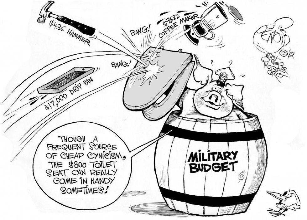 Back in the 1980s, this fixture on a Navy plane -- we're not talking the price of a toilet mind you, just the seat -- epitomized military waste. As a symbol the public could really visualize, its discovery expedited contracting reform. Other egregious examples emerged: a $436 claw hammer that looked like the kind you could pick up at the hardware store for $15, and a $7,622 coffee maker before espresso bars became commonplace, to name a few.