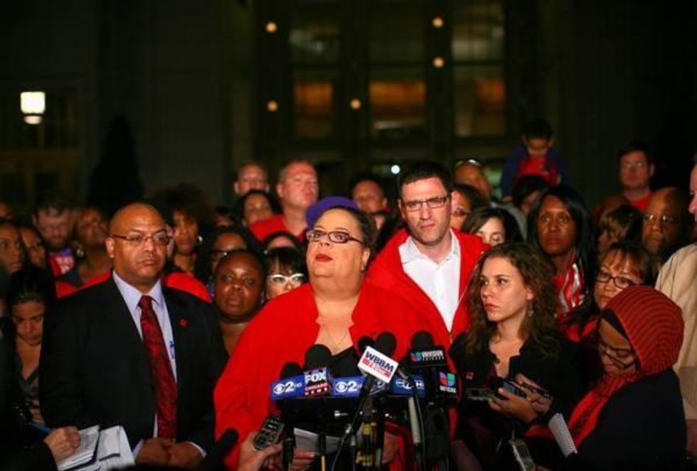 Teachers, paraprofessionals and school clinicians in Chicago have been without a labor agreement since June of this year. Following the inability of the Chicago Teachers Union (CTU) and the Chicago Public Schools (CPS) to reach an agreement over benefits, the role of standardized tests in teacher evaluations, and physical improvements to schools that teachers say are harming both teacher and student performance, the CTU has announced that a city-wide stirke will begin today -- the first teachers strike in 25 years. Pickets are expected at 675 schools and the Board of Education. The following are remarks from CTU President Karen Lewis.