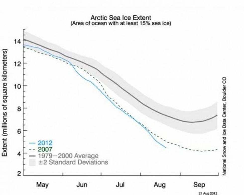 "Arctic sea ice plays a critical role in regulating the planet's climate. As man-made global warming shrinks the ice, our risk of droughts and other extreme weather goes up. We can't wait any longer to cut carbon pollution," Wolf said in a statement.