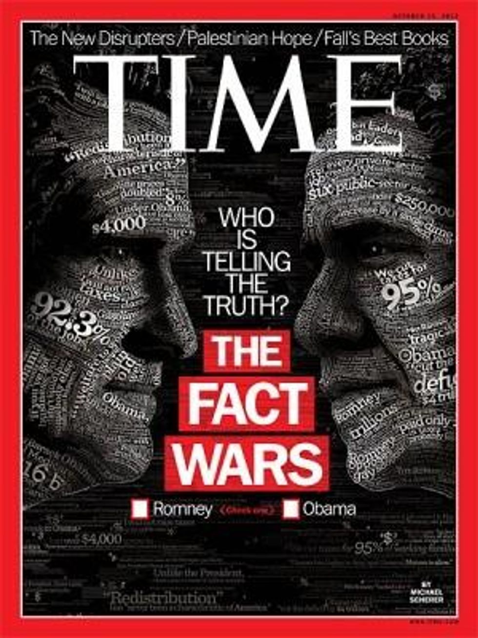 In Time magazine's new cover story ("Blue Truth, Red Truth," 10/3/12), Michael Scherer attempts to sort out the puzzle of campaign season factchecking.