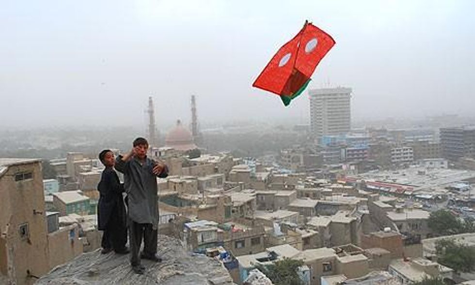 Later in the evening, I stood at the end of the second-floor hallway and looked out over the main street, a tangled chaos of foot, bicycle, and car traffic, busy with commerce. Beyond the honking of horns and the rumble of engines, a kite floated noiselessly. At first, when it drifted into view over the shops and above the low treetops, I did not recognize it as a kite. Unlike any kite I'd ever seen, it seemed to have no will of its own, and to be slowly, slowly "settling down," haphazardly lifting and falling in a very small space rather than tugging at its string and rising, a wafer almost perfectly weighted in the air. It did not reach for the heights, but rocked like a small boat on rough seas. In fact, when I first noticed it was a kite, I realized I had been aware of it peripherally for the last half hour, assuming it was a thin square piece of trash, a little too heavy to launch itself up into the stronger currents. But suddenly there it was, a kite, over Kabul, and what had appeared to me at first to be a hapless scrap, was in fact carefully wrought and masterfully flown. It danced and rocked just out of reach of tree branches and wires, never far from disaster and rescued from it only by the strength of steadfast attention and by exquisite skill and timing.