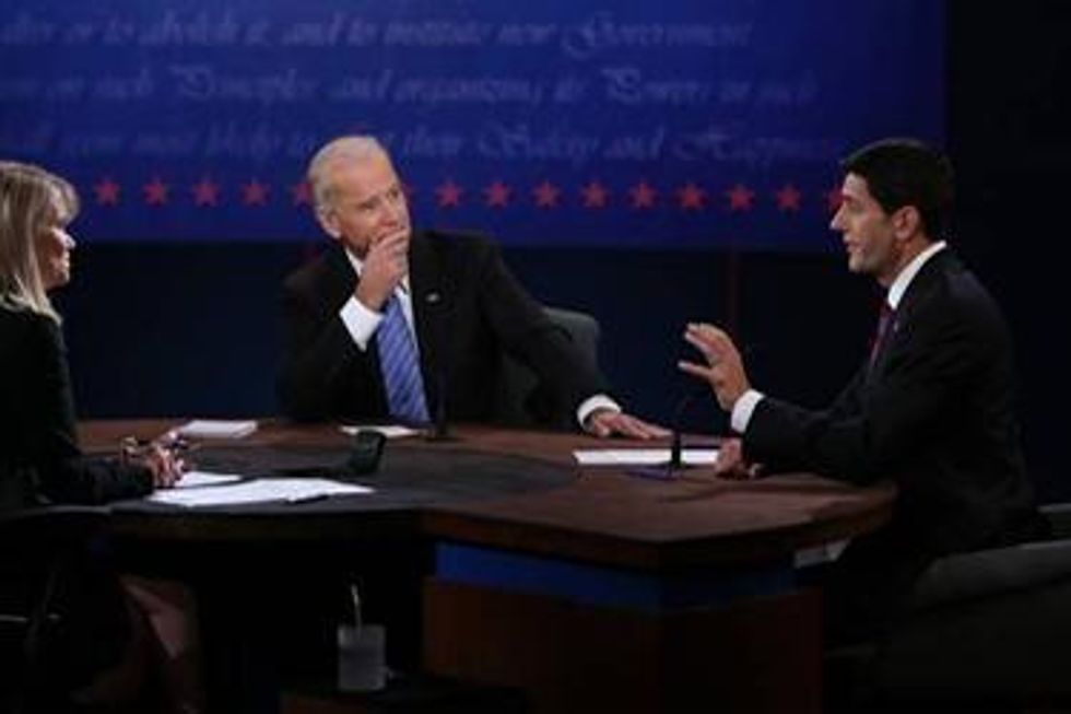 In less time than it takes to smoke a cigarette, in less time than the federal government mandates for bathroom breaks, in less time than it takes to listen to "Sympathy for the Devil" by the Rolling Stones, last night the Vice Presidential candidates paid lip-service to a woman's right to choose not just whether to carry an unwanted pregnancy to term, but even the right to prevent that pregnancy in the first place with easy access to affordable contraception. Her right to do so wasn't presented as a given -- even though legally and ethically both should be. Instead, it was couched as a question of morality under a religious framing, as if Catholicism, and not a woman's personal autonomy, should be the deciding factor of a woman's right to control her body.