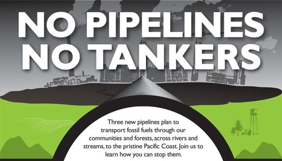 The Kinder Morgan Trans Mountain expansion and Enbridge Northern Gateway Pipeline would transport over one million barrels per day through BC. This would have devastating effects if either of them goes through--which of course they won't. Additionally, the day after we take action on October 22nd, the Athabasca Chipewyan First Nation will be attending a constitutional hearing about a Shell Tar Sands Mining expansion proposal that would severely impact their community. The ACFN says that neither the company nor the government has respected their treaty rights. We cannot accept that theses powers consider themselves above the law when their actions undermine communities' sovereignty and well-being.
