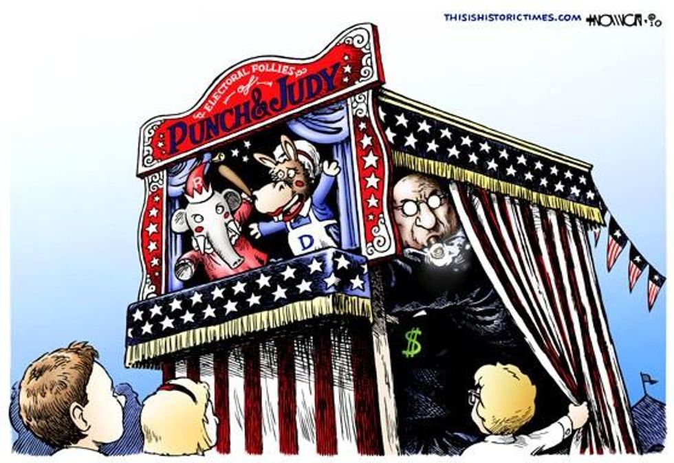 Watching him struggle to appear mild-mannered and fangless during the debates--an effort that translated into a zombie-like smirk--I began to understand him as the puppet he is, a marionette whose strings are pulled by the cabal behind the curtain: the Koch brothers and their ilk, along with Big Fossil Fuel, Big Pharma, Big Chemical, Big Ag, Big Free Trade, Big Finance, you name it.