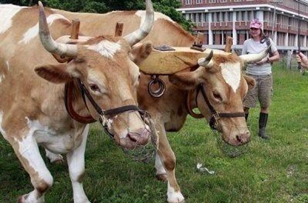 By now, you may well have heard the story of Bill and Lou, the team of oxen at Green Mountain College who, after much open discussion within our campus community, will soon be sent to slaughter.