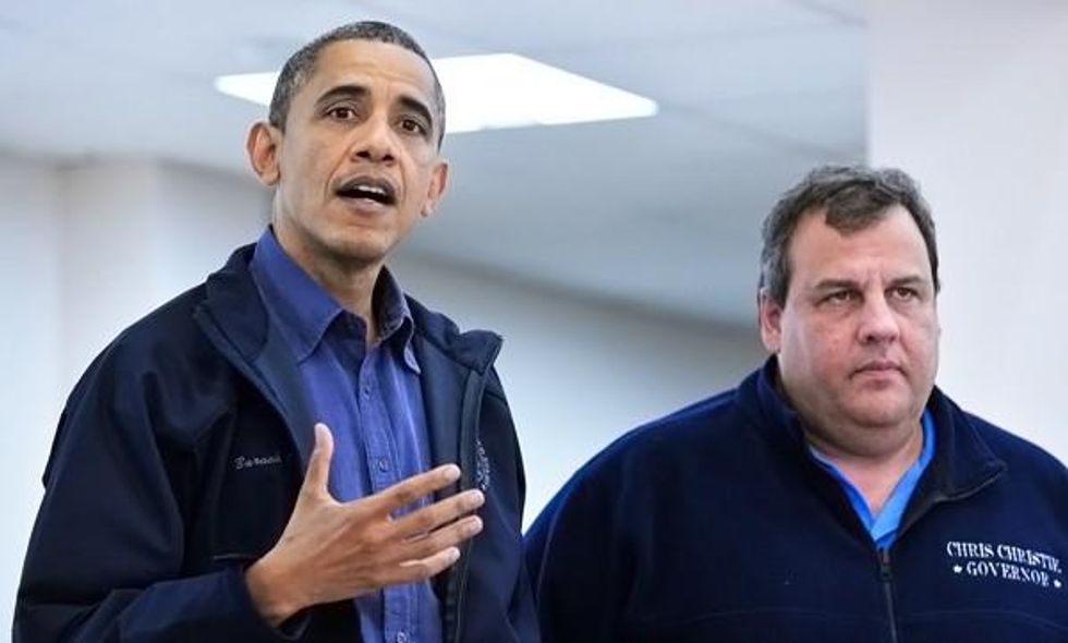 But this massive hurricane is apparently turning into a boon for Barack Obama on a number of fronts. One, it's allowed him to be seen all over television taking charge and acting presidential, and has even allowed him to brandish bipartisan credentials through the curiously intense bromance that he has developed this week with our own New Jersey Governor Chris Christie (a Romney supporter who, somewhat mysteriously, has gone out of his way to praise the president this week).