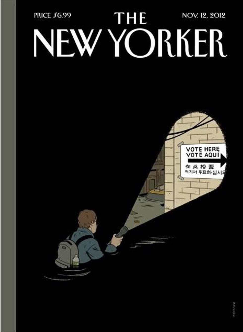 Yet whatever it takes, your individual vote is more important than ever, making your voice heard despite the money spent on this election - obscene billions - and no matter the cynicism, falsehood and other heinous behavior displayed in this pursuit of power and influence. The illustrated cover of this week's issue of The New Yorker magazine says it all. Titled "Undeterred," it shows a determined flood survivor in water up to his backpack, shining his flashlight through the darkness onto a sign: "Vote Here Vote Aqui."