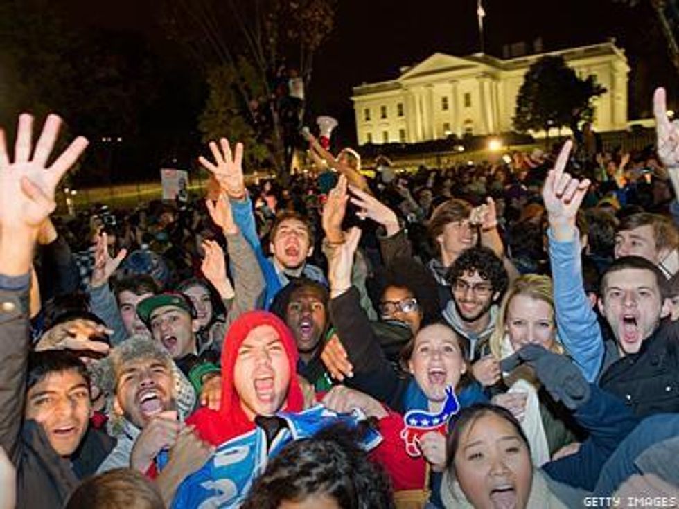 This year felt very different, and though many of us put faith in the polling that indicated that President Obama would be reelected -- holding the fate of the Supreme Court and the pro-equality executive orders in the balance -- we still looked with baited breath at the exit polling, and examined the returns as they came in. And we erupted into cheers when Ohio was called in favor of Obama, cementing victory. This night was an unequivocal triumph for LGBTs, and we'd be damned if we weren't going to celebrate it.