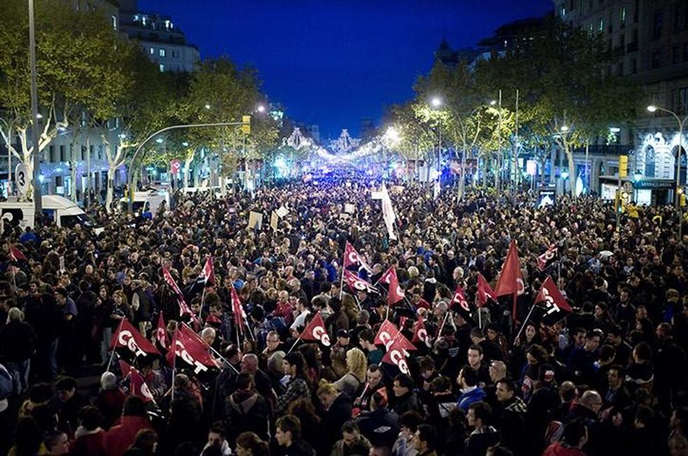 The general strike that swept across Europe Nov. 14 had its genesis in the deepening crisis in Spain, Portugal and Greece. As a result of the global economic collapse in 2008, Spain is in a deep financial crisis. Unemployment has surpassed 25 percent, and among young people is estimated at 50 percent. Large banks have enjoyed bailouts while they enforce mortgages that an increasing number of Spaniards are unable to meet, provoking increasing numbers of foreclosures and attempted evictions. "Attempted" because, in response to the epidemic of evictions in Spain, a direct-action movement has grown to prevent them. In city after city, individuals and groups have networked, creating rapid-response teams that flood the street outside a threatened apartment. When officials arrive to deliver the eviction notice, they can't reach the building's main door, let alone the apartment in question.