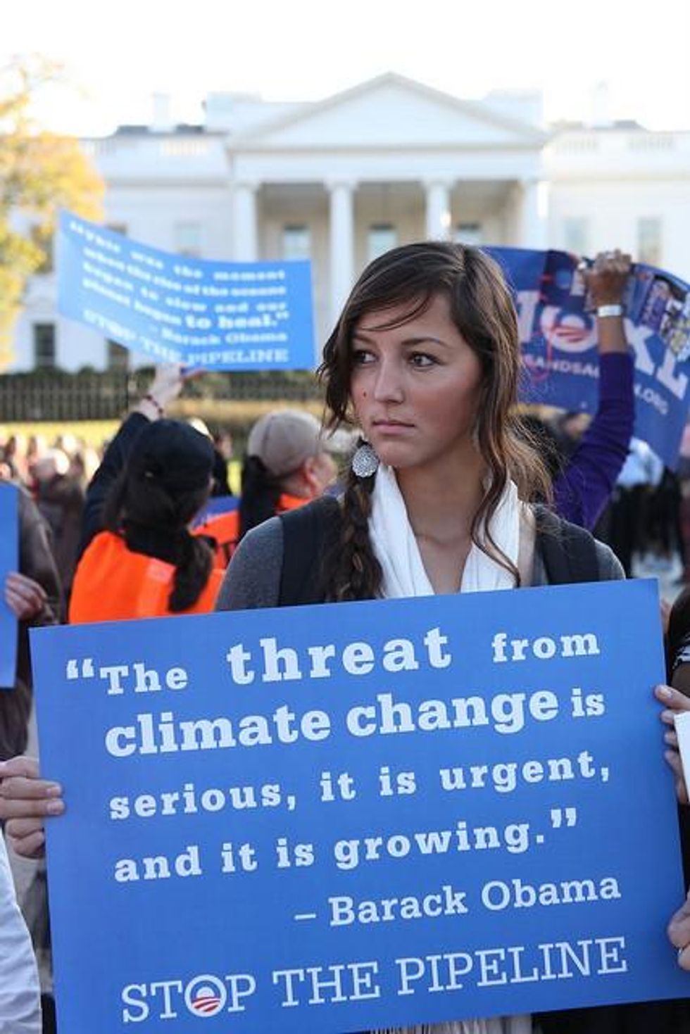 That's why we came to Washington, DC a year ago August to stage the largest wave of civil disobedience in over thirty years at the White House. Our goal wasn't to tear the President down, but to lift him up and help him meet the promises he made as a candidate. When we returned to the White House in November with 15,000 people, the only placards we carried were quotes from the President himself, words like: "The threat from climate change is serious, its urgent, and its growing."