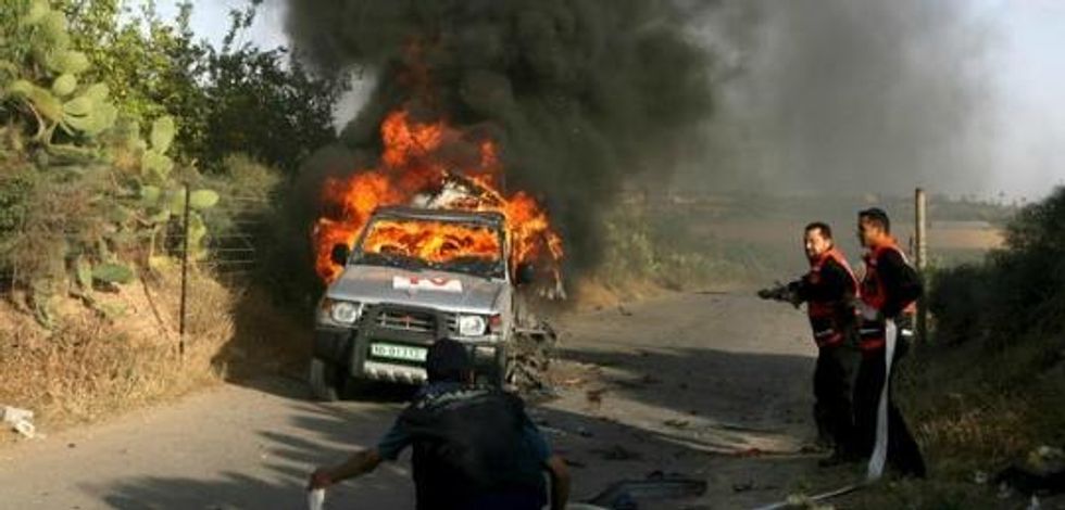 After the first missile that killed Fadel, a second tank missile directly hit the Reuters vehicle in which Fadel had been traveling, killing two children and another civilian close by, and injuring 12 others, including five children. Wafa Abu Mezyed, 25, a Reuters sound man, was injured.