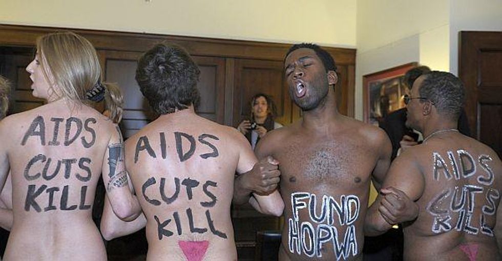 The following week, three AIDS activists from Vocal-NY were arrested after they stripped naked in the outer office of House Speaker John Boehner.