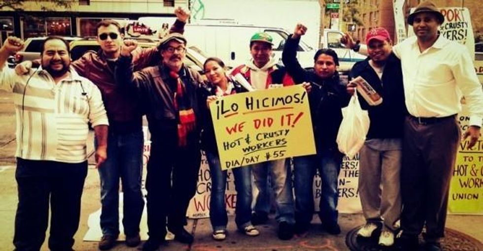 UPDATE: Reflecting the same uncompromising energy as the Hot and Crusty workers earlier this year, New York City has just seen a spectacular surge of strikes by non-union fast food workers demanding decent wages and working conditions. For more, see David Moberg and Josh Eidelson's coverage of this potentially groundbreaking workers' movement.