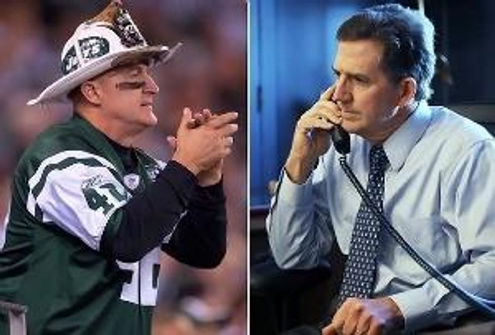 The instant famed Jets fan Fireman Ed saw that play, he decided he didn't want to be the guy in the stands the networks panned to for the next five years every time Sanchez threw a pick six or fumbled the ball off his face - so Ed picked up his little face-paint kit, went home, and penned a completely serious formal resignation. DeMint just did exactly the same thing, only now he's going to make seven figures at the Heritage Foundation just to not go to the games.