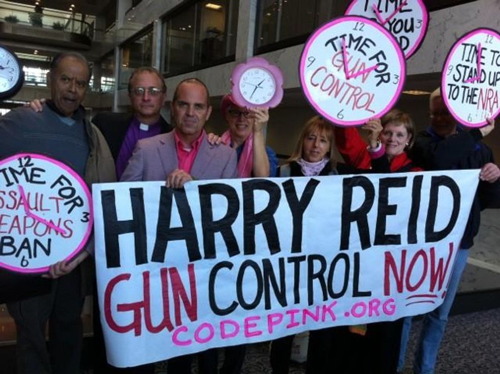 When CODEPINK, MoveOn and representatives of other organizations marched into Senator Harry Reid's DC office on Tuesday, December 18, they wanted a simple answer to a simple question: Does the Senator support a ban on assault weapons and high-capacity clips, such as the legislation proposed by Senator Dianne Feinstein an