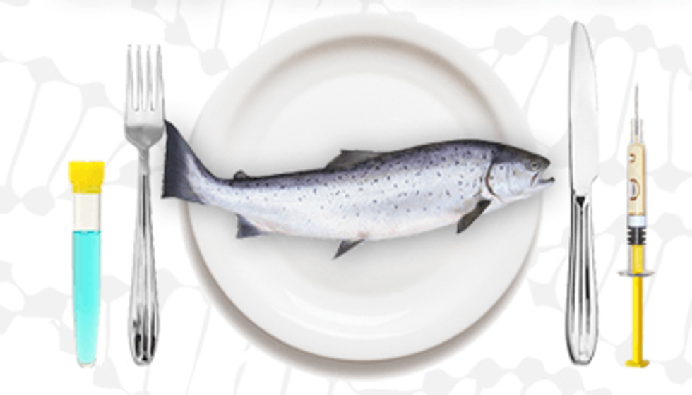 The AquAdvantage salmon is an Atlantic salmon engineered with two extra genes - one from the Pacific Chinook salmon and one from an eel-like species called the ocean pout - which together boost the fish's growth hormones so it puts on weight all year round instead of seasonally.