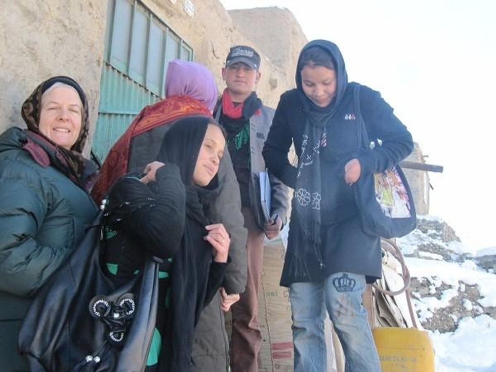 KABUL - Yesterday, four young Afghan Peace Volunteer members, Zainab, Umalbanin, Abdulhai, and Ali, guided Martha and me along narrow, primitive roads and crumbling stairs, ascending a mountain slope on the outskirts of Kabul. The icy, rutted roads twisted and turned. I asked if we could pause as my heart was hammering and I needed to catch my breath. Looking down, we saw a breathtaking view of Kabul. Above us, women in bright clothing were navigating the treacherous roads with heavy water containers on their heads or shoulders. I marveled at their strength and tenacity. "Yes, they make this trip every morning," Umalbanin said, as she helped me regain my balance after I had slipped on the ice.