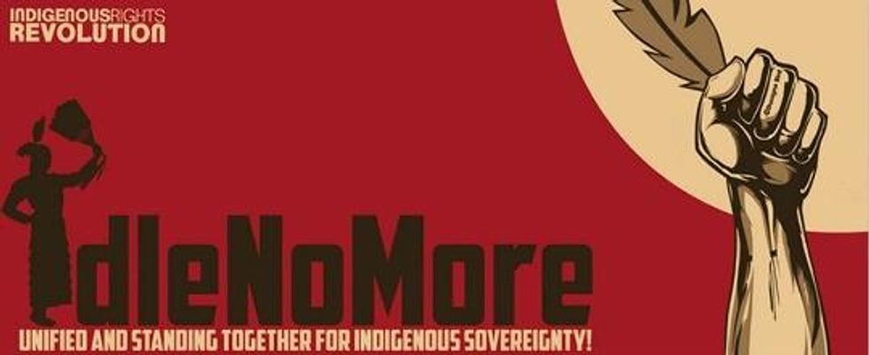 But there's a stumbling block they hadn't counted on, and that was the resurgent power of the Aboriginal Nations. Some Canadian tribes have signed treaties with the Crown, and others haven't, but none have ceded their lands, and all of them feel their inherent rights are endangered by Harper's power grab. They are, legally and morally, all that stand in the way of Canada's total exploitation of its vast energy and mineral resources, including the tar sands, the world's second largest pool of carbon. NASA's James Hansen has explained that burning that bitumen on top of everything else we're combusting will mean it's "game over for the climate." Which means, in turn, that Canada's First Nations are in some sense standing guard over the planet.