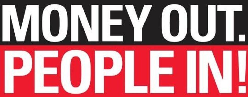 Hence MoneyOut/VotersIn Day in some sixty cities on January 19. That's when a large coalition of public interest, labor, voting rights and faith groups are aspiring to a "more perfect union" on the confluence of the third anniversary of Citizens United, the weekend celebration of MLK and the Presidential Inauguration.