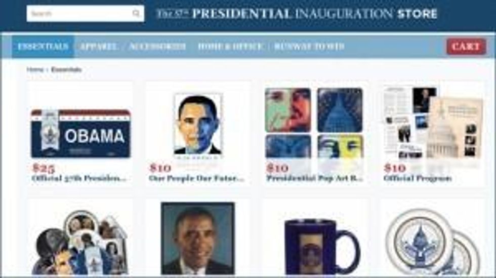Just check out the online "57th Presidential Inauguration Store", peddling more tchotchkes than the vendors outside a Justin Bieber concert -- from shot glasses, T-shirts and tube socks to an Obama portrait by the artist Chuck Close and a $7500 set of official medallions.