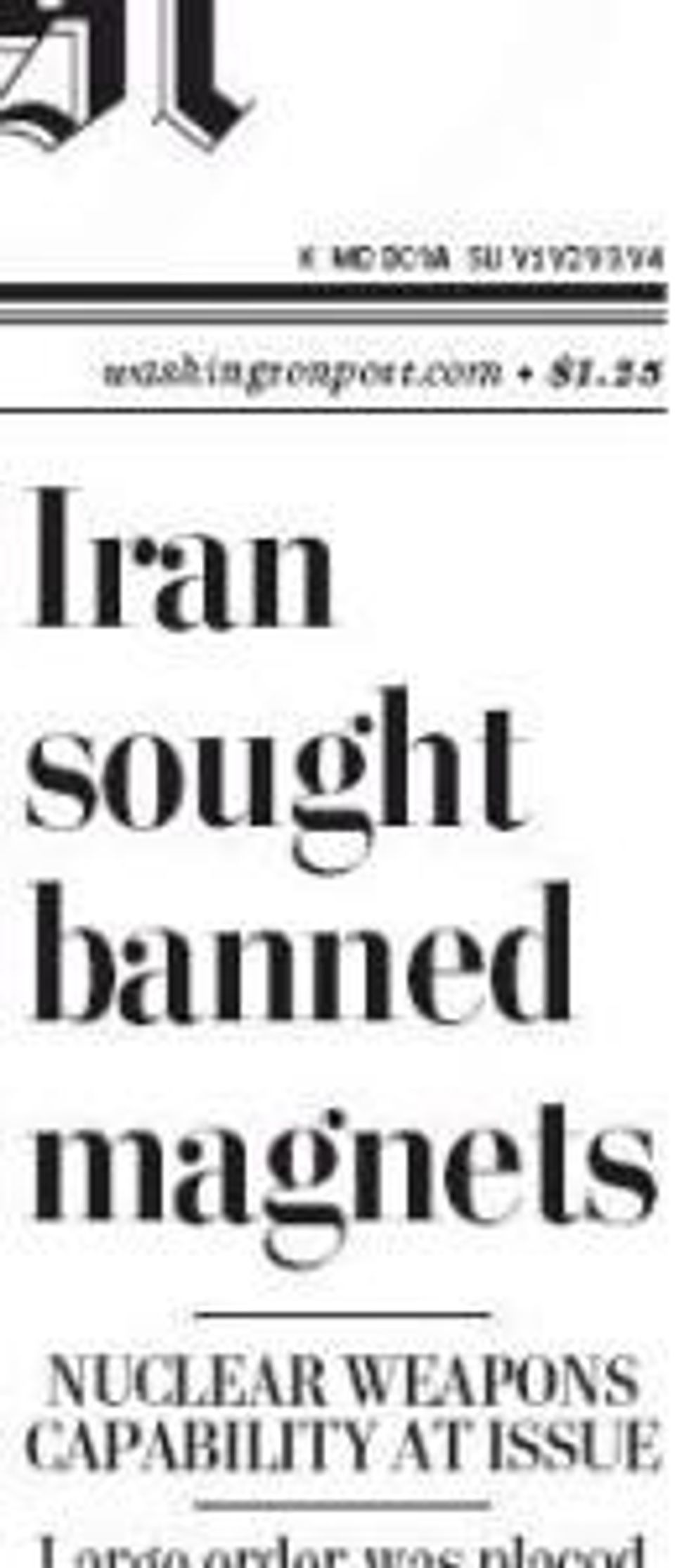 It's worth noting that back in 2002 there was one newspaper that poured cold water on the Iraq tubes story. It was the Washington Post. The reporter? The same Joby Warrick who wrote this story about Iranian magnets. And whose expertise did he rely on? David Albright of ISIS-the very same person pushing the Iran story now.