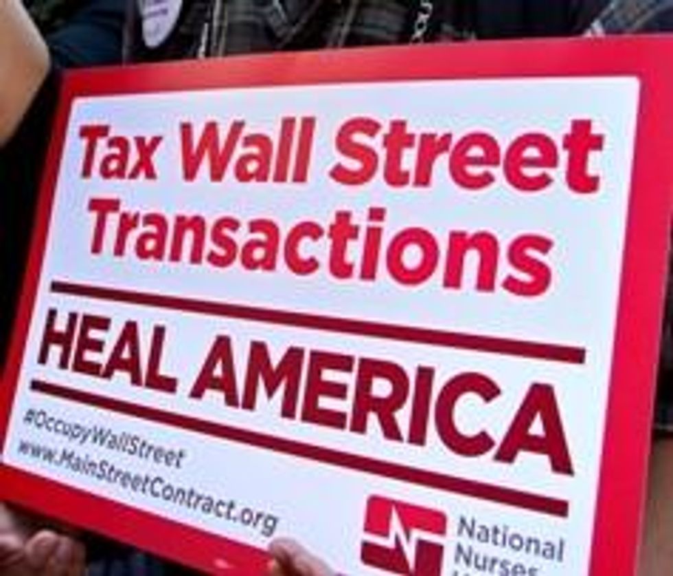 One great idea is a very small tax on financial transactions, otherwise known as a financial speculation tax. Senator Tom Harkin and Congressman Peter DeFazio have introduced a bill in both chambers of Congress, "The Wall Street Trading and Speculation Tax Act of 2013." It would levy a tiny tax - just 3 cents per $100 - on trading of stocks and bonds as well as futures, options, and other derivatives. According to the non-partisan congressional Joint Tax Committee, based on a very similar bill, this would raise about $352 billion over the next decade.
