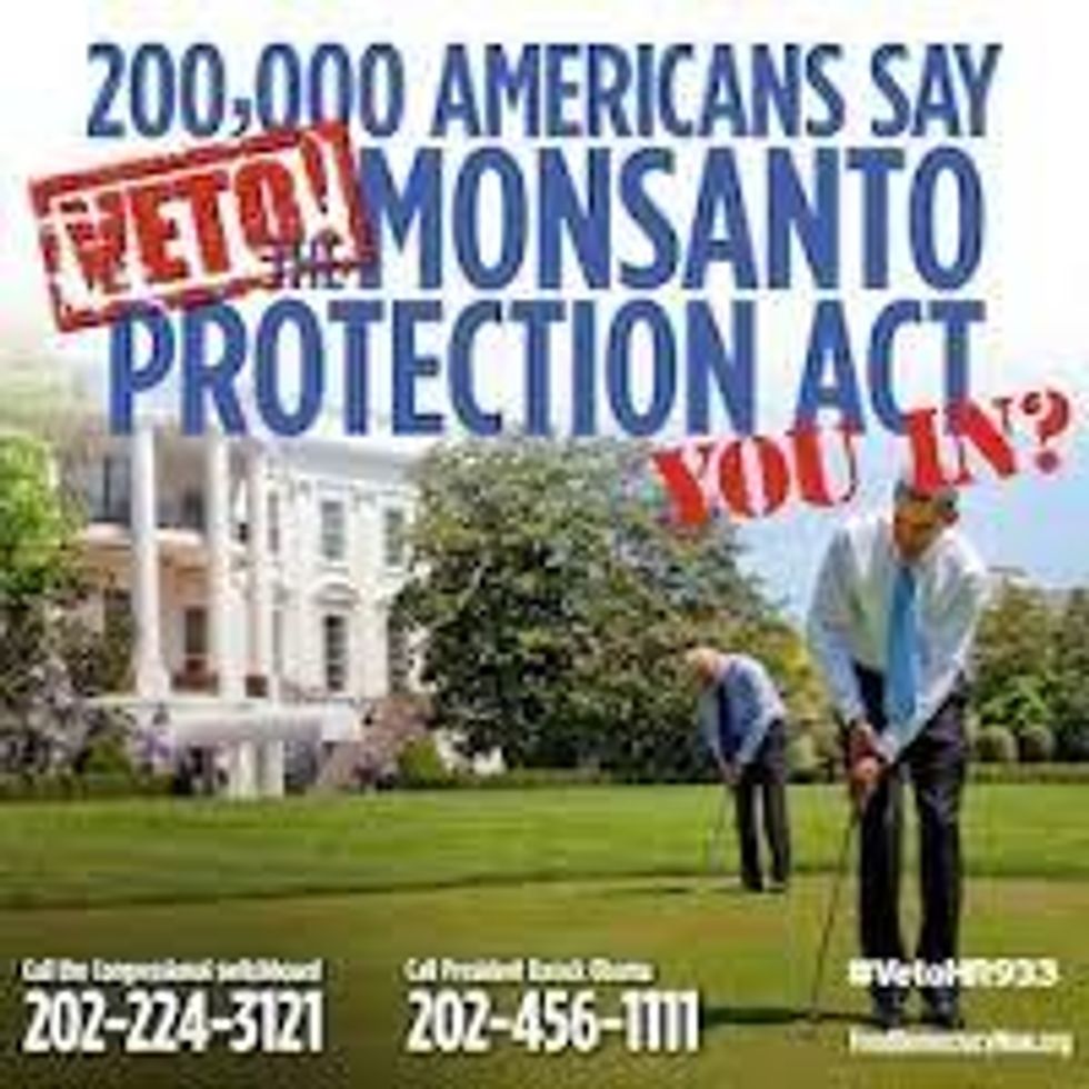 But it's not too late. You can still demand that President Obama refuse to sign the budget bill into law unless the biotech rider (aka Monsanto Protection Act) is removed. Food Democracy Now! has already gathered more than 175,000 signatures demanding Obama do the right thing. From that organization's action alert:
