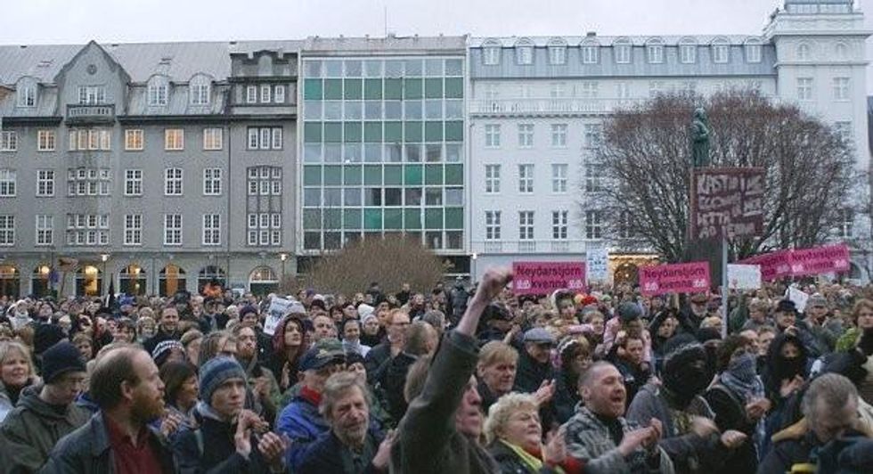 The crowds grew to 10,000 -- out of a total population of 320,000 -- and the increasing turbulence forced Prime Minister Geir H. Haarde to announce that he and his cabinet would resign and new elections would be held. Although the politicians responsible for Iceland's financial life were resigning, the campaigners didn't stop there; they demanded -- and won -- the resignation of the governing board of the Central Bank.