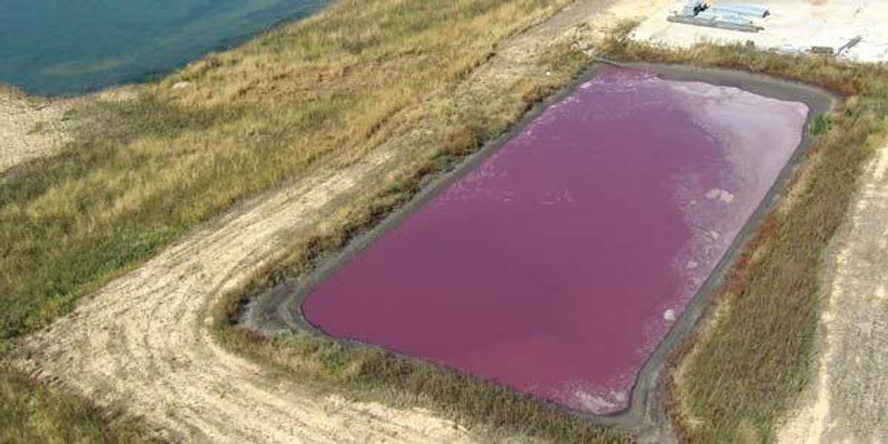 Long, convoluted, infuriating story short, a judge issued a temporary injunction in October 2008, forcing Bos to halt construction. But the temporary injunction didn't hold the project off for long; in 2009, the trial court entered an order in favor of A.J. Bos denying HOMES' request for a permanent injunction. In the meantime, the uncovered silage began to ferment, creating an acidic leachate that seeped from the CAFO site, polluting nearby surface waters and likely groundwater. HOMES and other activists diligently monitored these illegal discharges and documented major water pollution events, the most notable of which caused a tributary to the Apple River to turn purple (seriously; see photos from HOMES).