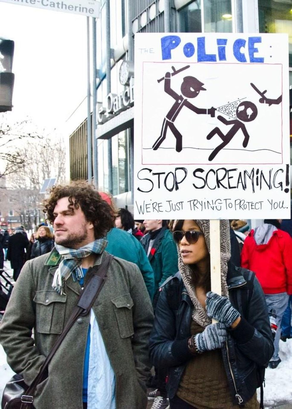 This rather jaw-dropping statement raised the ire of Veronique Robert, a criminal lawyer in Montreal. Her scathing rebuttal on the website of weekly newspaper Voir titled "Fear the police, not the protests" is a delicious take down of this absurd position, and if you read French I recommend reading it in its entirety. Here's a taste:
