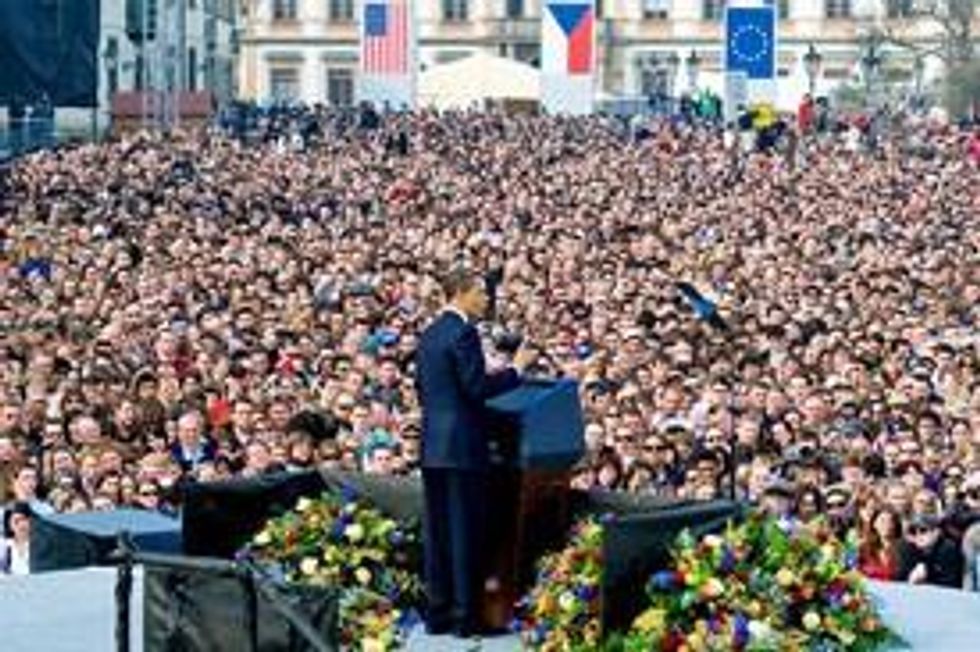 ...Human destiny will be what we make of it. And here in Prague, let us honor our past by reaching for a better future. Let us bridge our divisions, build upon our hopes, accept our responsibility to leave this world more prosperous and more peaceful than we found it. Together we can do it."