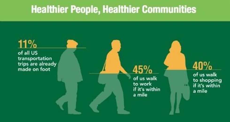 Americans already walk more than many people realize, accounting for 11 percent of daily transportation trips nationally according to the U.S. Department of Transportation. "But until now there has not been a unified voice to advocate for improving the built environment to increase walking for transportation, shopping, and leisure," notes Scott Bricker, executive director of America Walks.