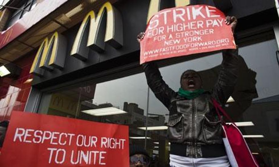 Last week, approximately 400 workers in the fast food industry went on a one-day strike protesting the "McWages" that keep them them living at or even below the poverty line. Despite their modest demands - the workers want to be able to exercise their right to form a union without intimidation or harassment and they want to be paid a living wage of $15 per hour - they face an uphill battle to achieve them.