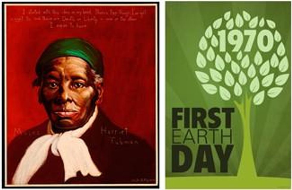 (Images: Harriet Tubman portrait byRobert Shetterly, Americans Who Tell the Truth; 2009 Earth Day Celebration poster by Debra Lee Toth via Creative Commons.)