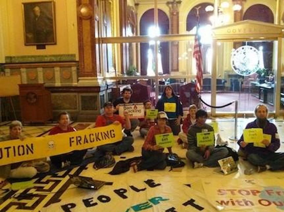 As a sit-in movement continues at the office of Gov. Pat Quinn in Springfield, Illinois, besieged southern Illinois residents who have been left out of backroom legislative negotiations over a controversial and admittedly flawed regulatory fracking bill are calling on the nation to contact Gov. Quinn and Attorney General Lisa Madigan to "put a moratorium on drilling to investigate its full climate and health impacts."