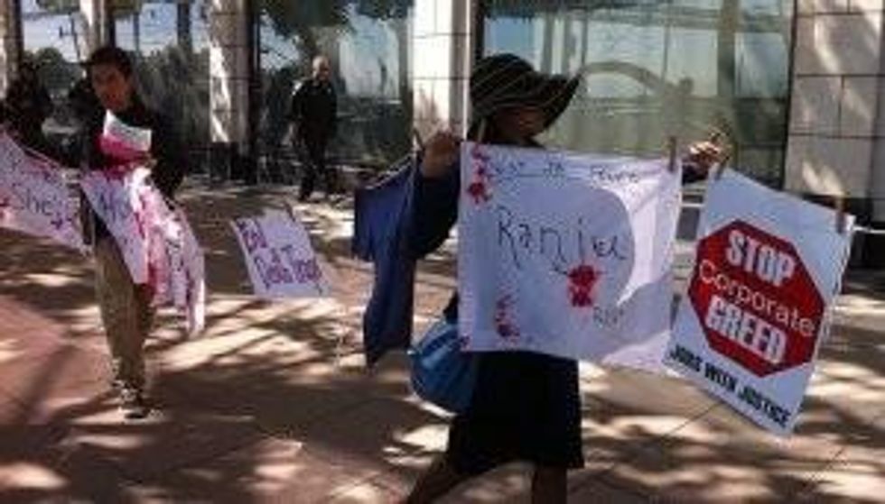 The latest wave of anti-corporate activism has deepened solidarity networks between regions by making a point of elevating the voices of workers in the Global South. Earlier this month, Bangladeshi labor activist Kalpona Akter, a former factory worker and a leader of the Bangladesh Center for Worker Solidarity, joined the demonstrations of striking Wal-mart workers at the company's June shareholder meeting, to demand fair treatment and higher wages for garment workers. In her address, she reminded Wal-Mart Chairman Rob Walton, "I am sure you are aware that fixing these buildings would cost just a tiny fraction of your family's wealth... You have the power to do this very easily."