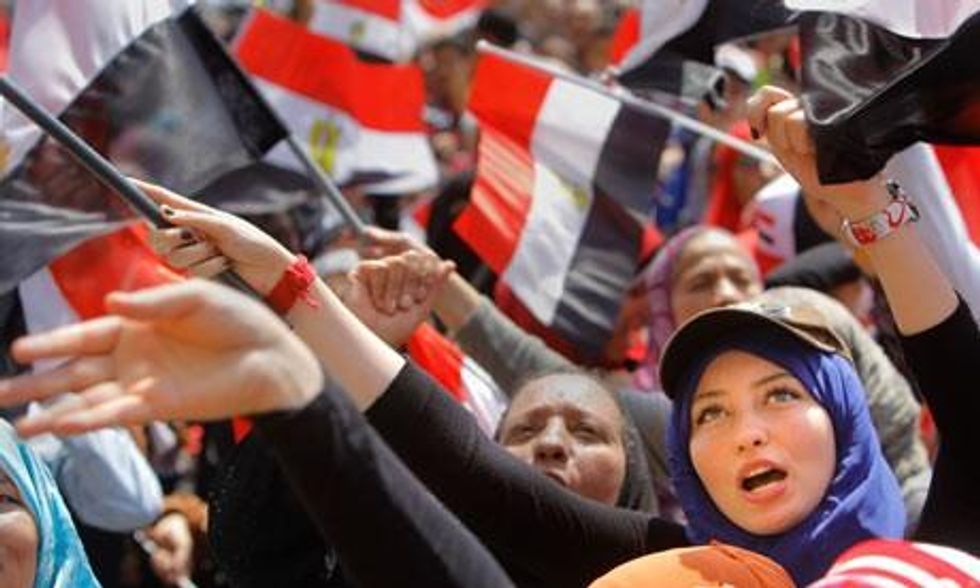 The people insist on treating the army as their own. When a military helicopter circled overhead it was transformed into a moving constellation of green dots as the crowd roared and targeted it with playful laser beams. People want to believe the military has learned its lesson and doesn't want to rule; that the "bad" people are no longer in Scaf; and that the army chief, General al-Sisi, will oversee another set of elections.